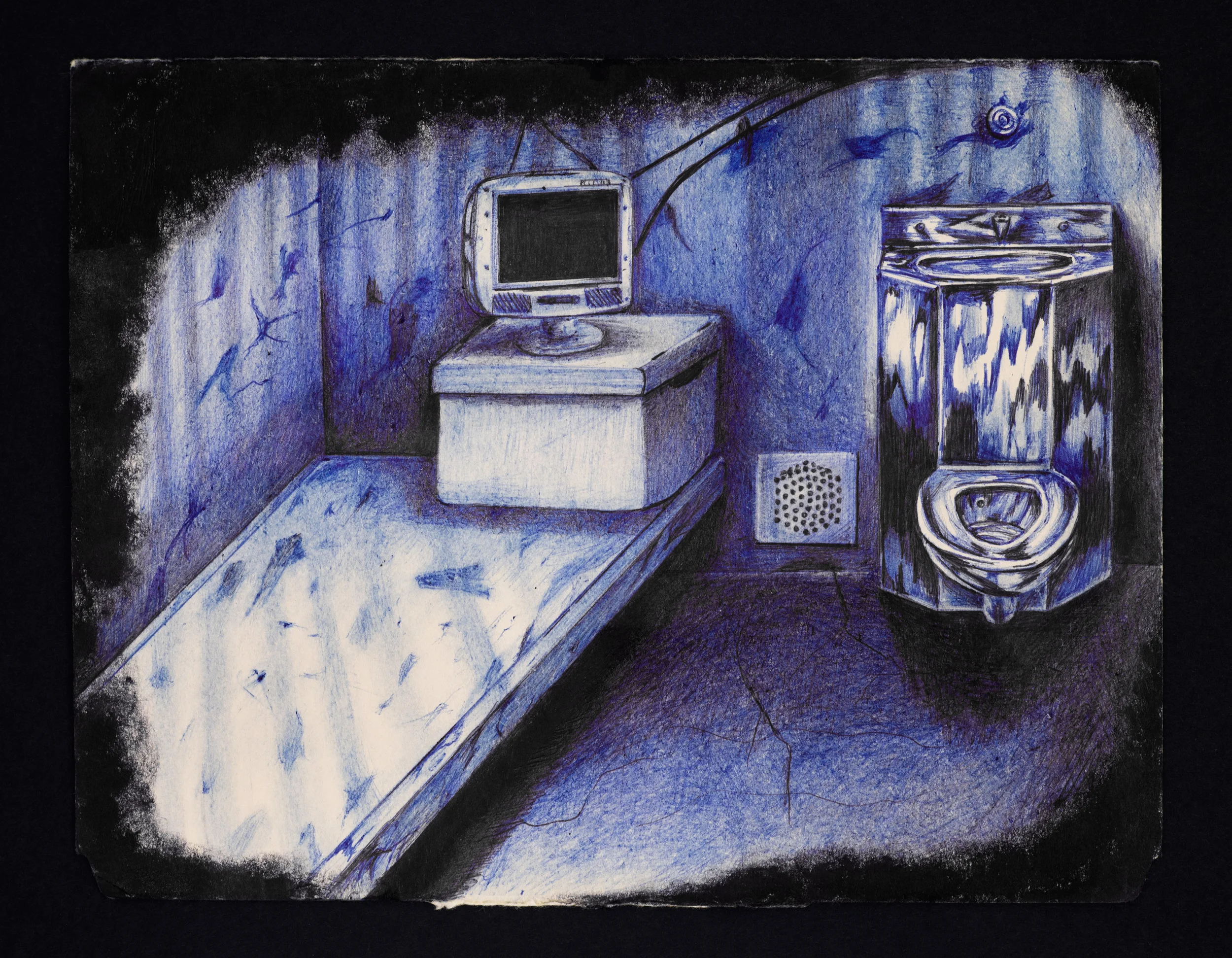 Untitled (Blue Cell), ink on paper, 9" x 11 5/8”